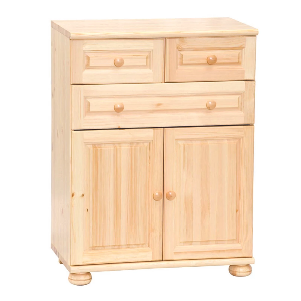 125 Borovi fenyő komód 80x110 cm – 2 ajtós, 3 fiókos, natúr lakkozott